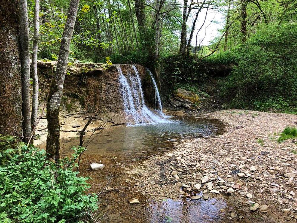 Wir finden uns jetzt auf einem schönen Naturpfad entlang der Schlichem immer am Waldrand haltend, bis wir auf eine große Wiese kommen. Wir bleiben noch etwas am Waldrand, werden dann aber bald wieder in den Wald gehen und überqueren etwas später die Schlichem nach rechts. Auf der anderen Seite des Hanges stoßen wir auf eine asphaltierte Schlagloch-Piste, der wir nach links folgen werden.