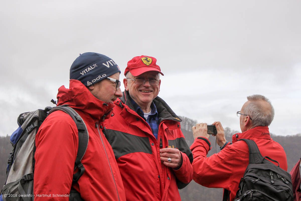 Ein kurze Rast am Ortstausgang von Holzelfingen lässt uns etwas Zeit für das traditionelle Gruppenfoto.